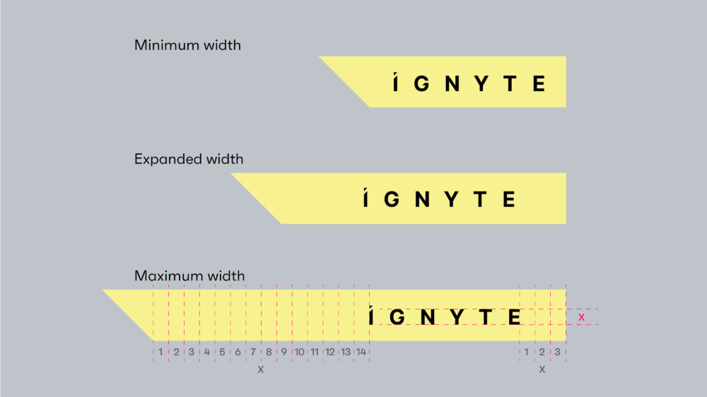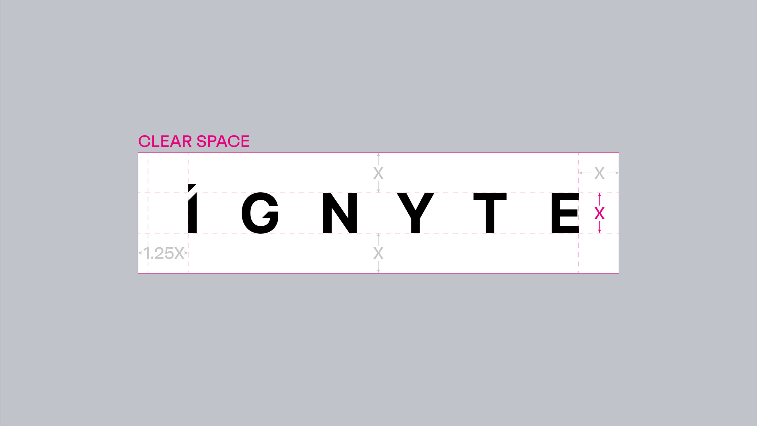 Clear space is equal to the x-height of the Ignyte brandmark and the icon as shown.