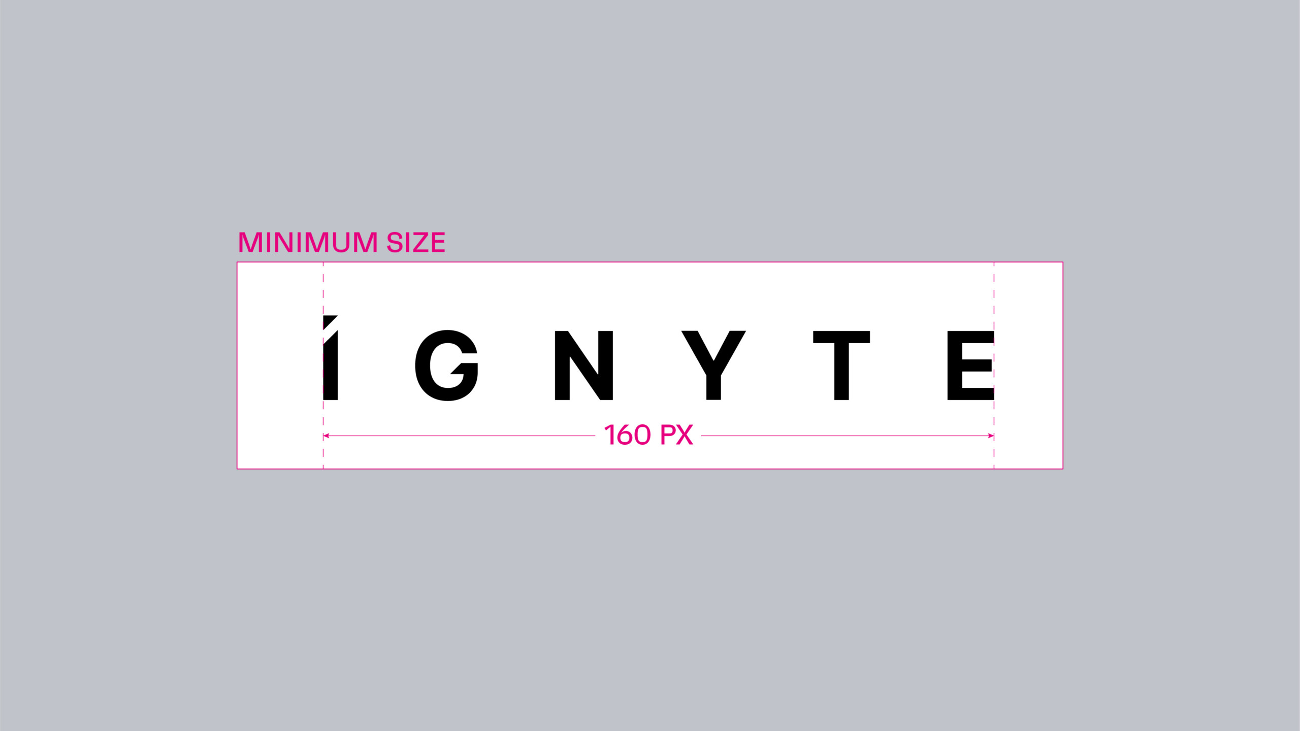 The minimum size rules should be adhered to strictly. This will ensure the Ignyte brandmark and icon are always legible across all applications. Visuals are not shown to scale.
