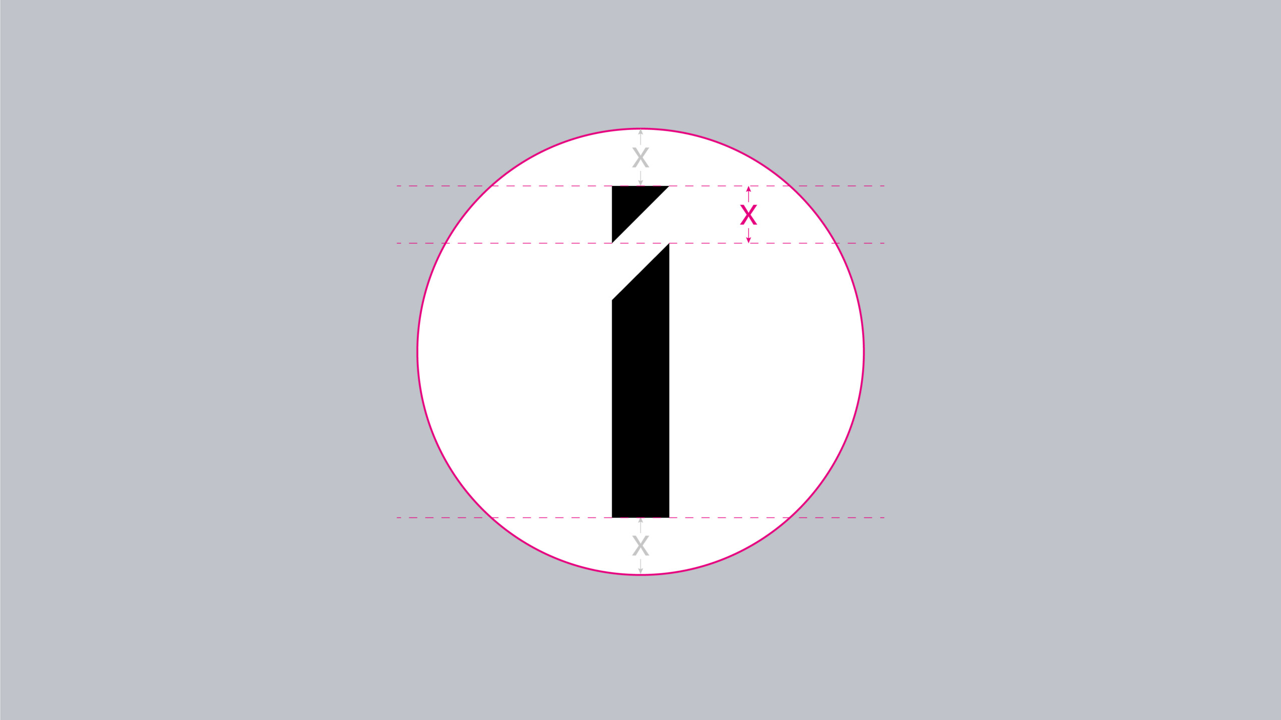 3. Spacing above and below the copy should be equal to that of the cap-height of the type – shown using “x” in the visual guide below.