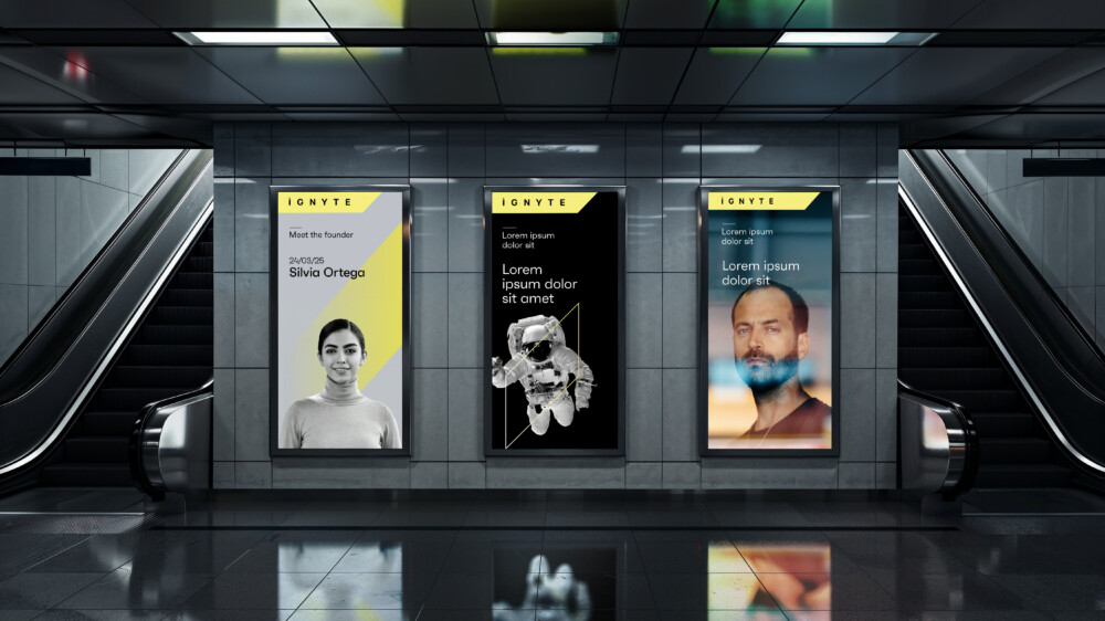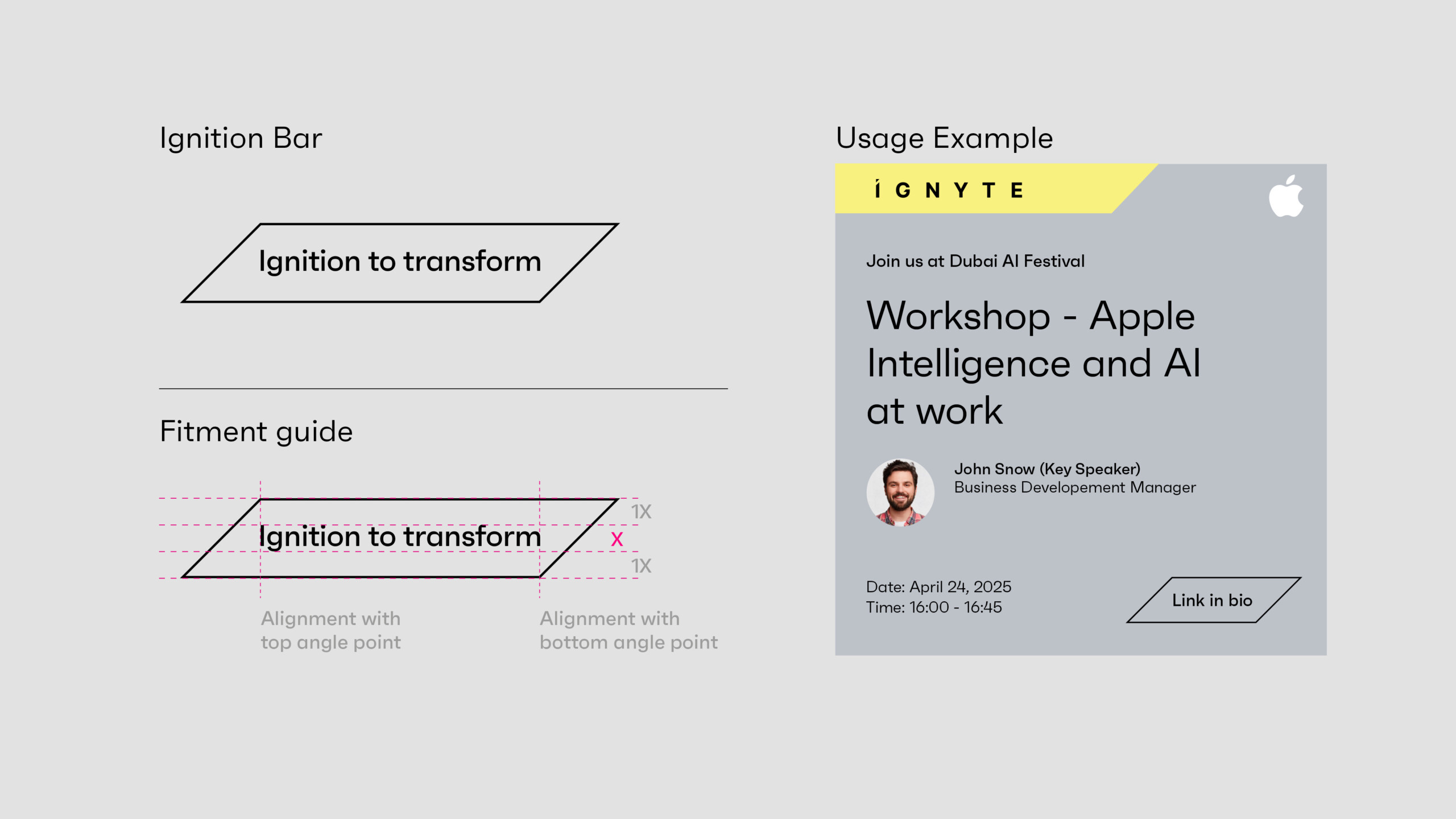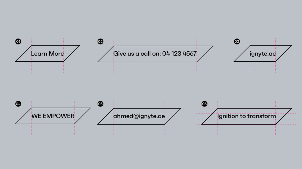 These graphic devices are inspired from the detail that features in the ‘I’ of the Ignyte brandmark. This creates a dynamic brand that is agile and adaptable to different content requirements.