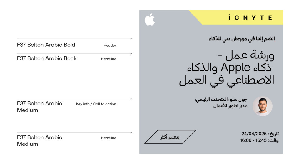 F37 Bolton Arabic Semi-Bold: Highlights / Key information / Call to action