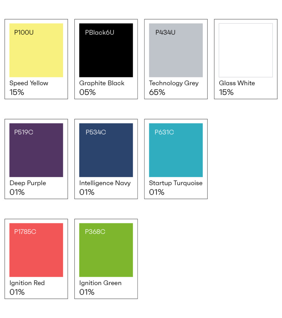 The following is the brand colour palette for Ignyte and a guide to the ratio of colours that can be used across brand application. The ratios should be followed closely on each layout to maintain the personality of the brand.