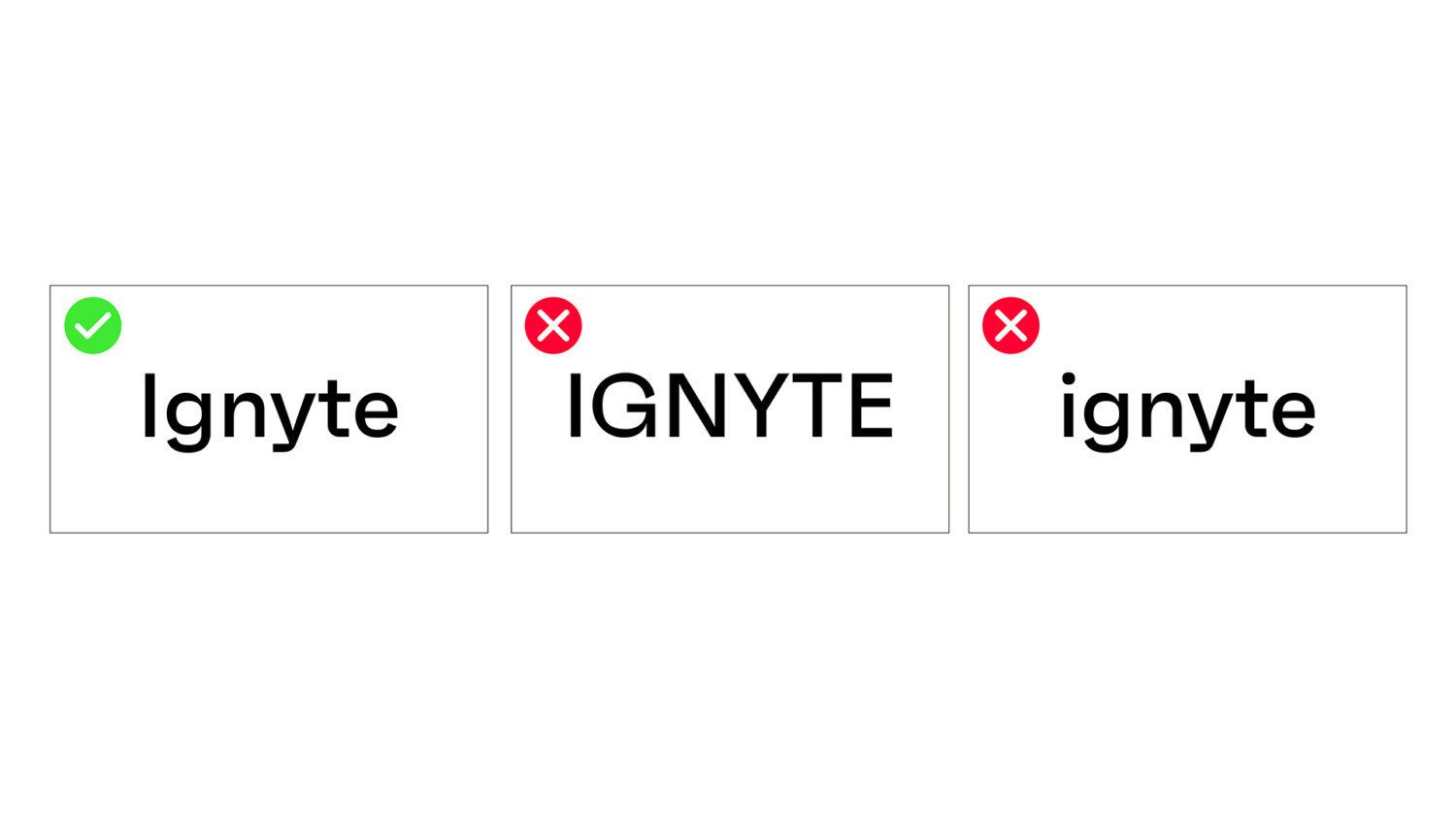 It is important to remember that even though the Ignyte brandmark is in uppercase, it is essential to typeset Ignyte with a capital I, as it is a brand name and not the common verb.