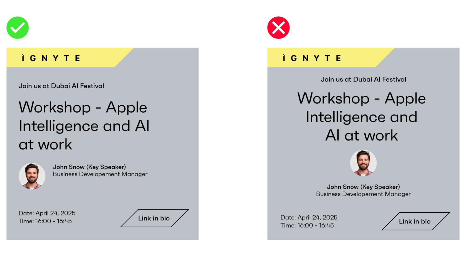 When we are appearing on partner led communications we would ask that the layout is left aligned and that the Ignyte brandmark adheres to all clear space and minimum size rules. The brandmark should appear black on lighter colours and white reversed out on darker colours.