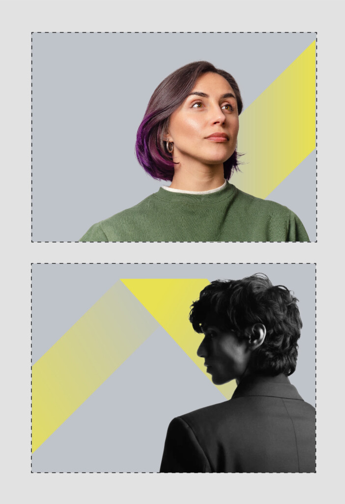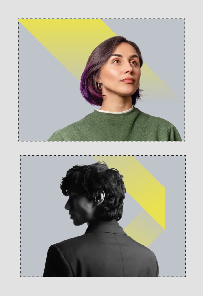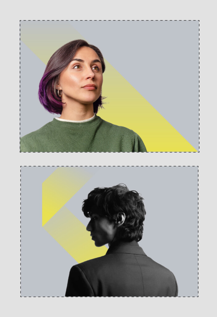 The Velocity Strip can be shifted along the entire length of the canvas, but always interacts with the subject of the layout (person or object) as demonstrated below.