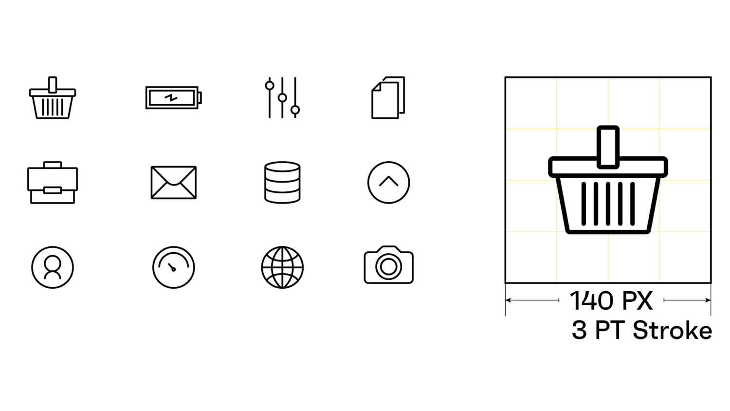 Shown here are a small set of icons – indicating the form and style that should be adopted.